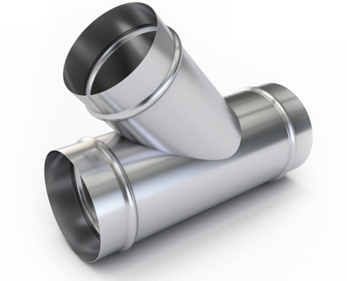 Тройник с одним входом под 45 градусов выполняет функцию изменения направления распределения потока воздуха по вохдуховоду.